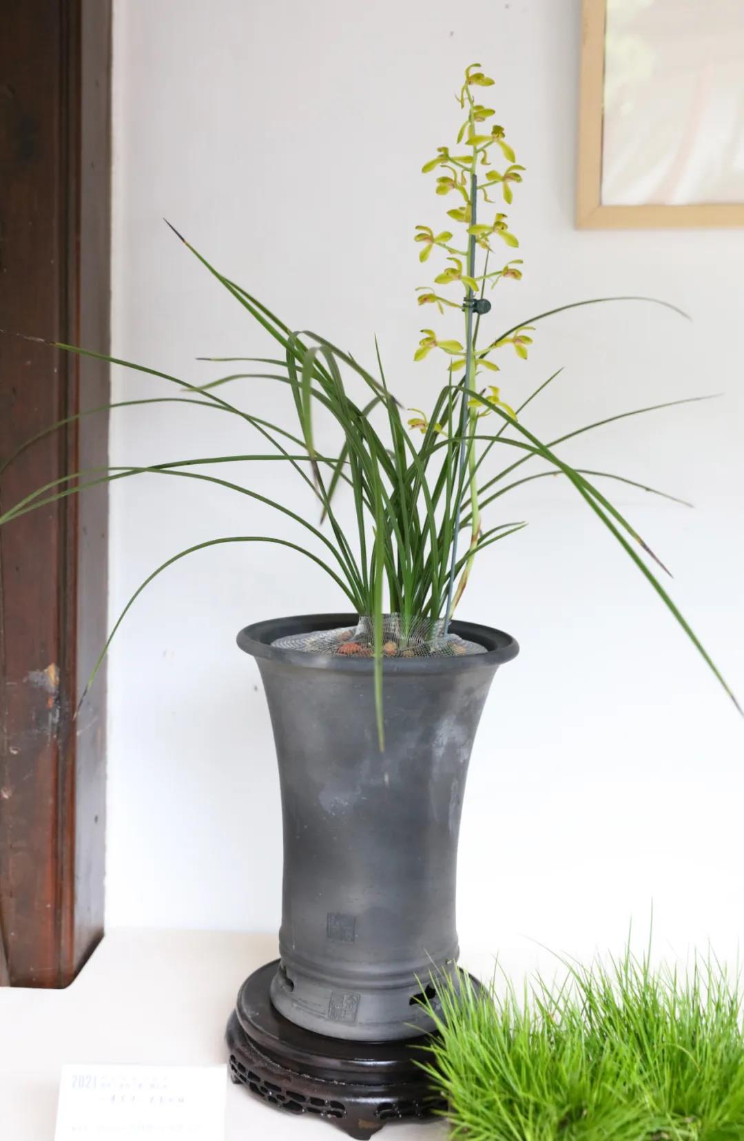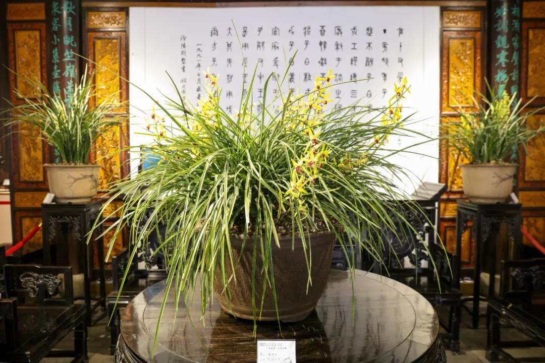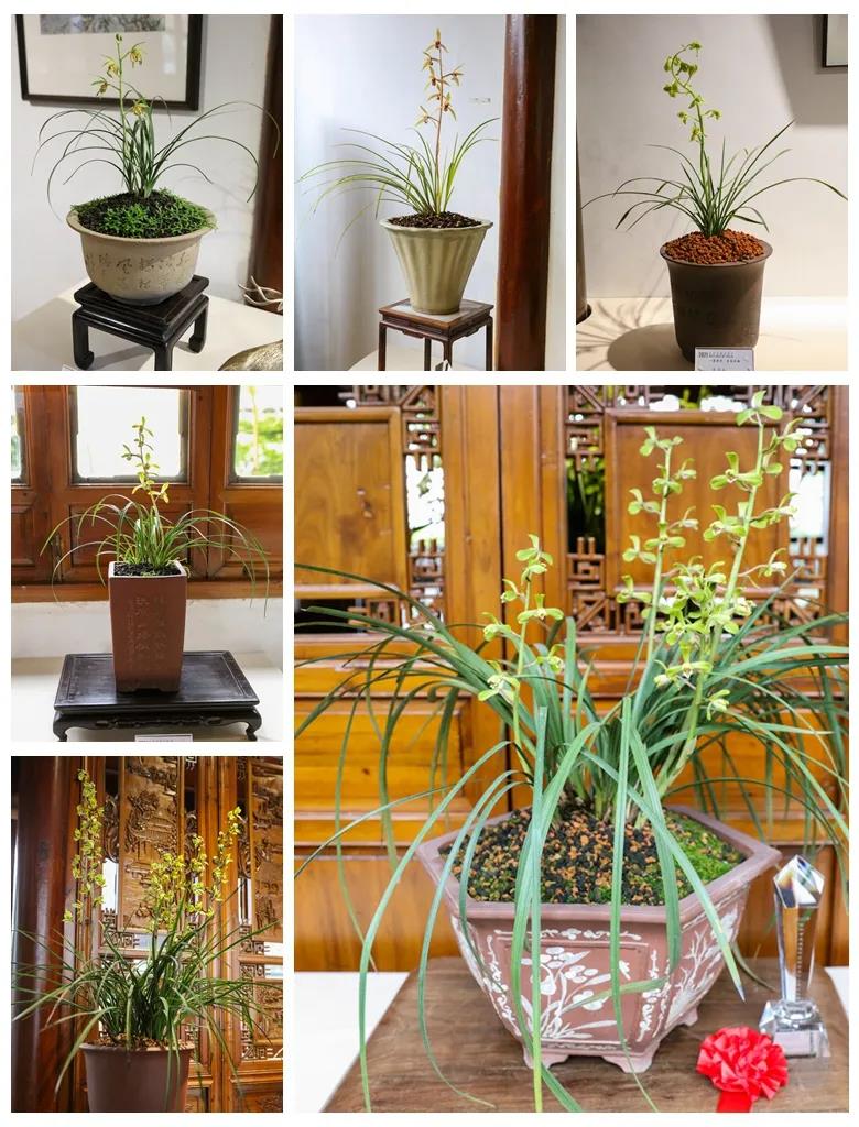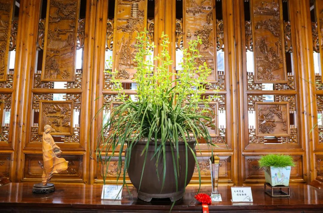 人文園林共有8盆蕙蘭共7個品種參展,分別為“春江梅”、“盧氏蕊蝶”、“翠豐梅” 、“蕩字”、“奇花復輪”、“云中鶴”和“大疊彩”,皆為人文園林董事長陳勝洪多年來采集、收藏的精品。因為對蘭花的熱愛與癡迷,30多年來,他傾力采集、培育了大量蘭花品種,“春江梅”這個品種采自桐廬山中,花桿翠綠出架,花守特好,葉姿半垂,幽香雅韻,如空谷佳人,陪伴他已有20多年。