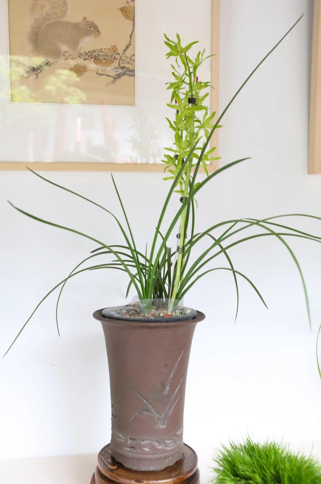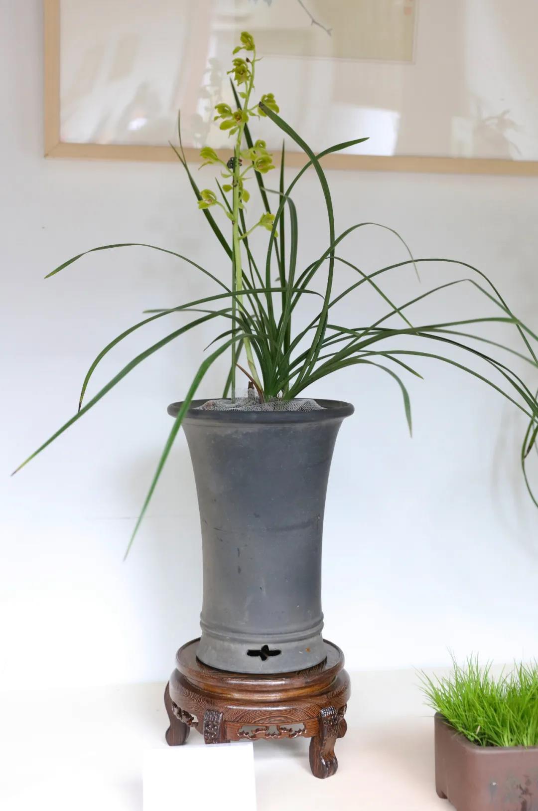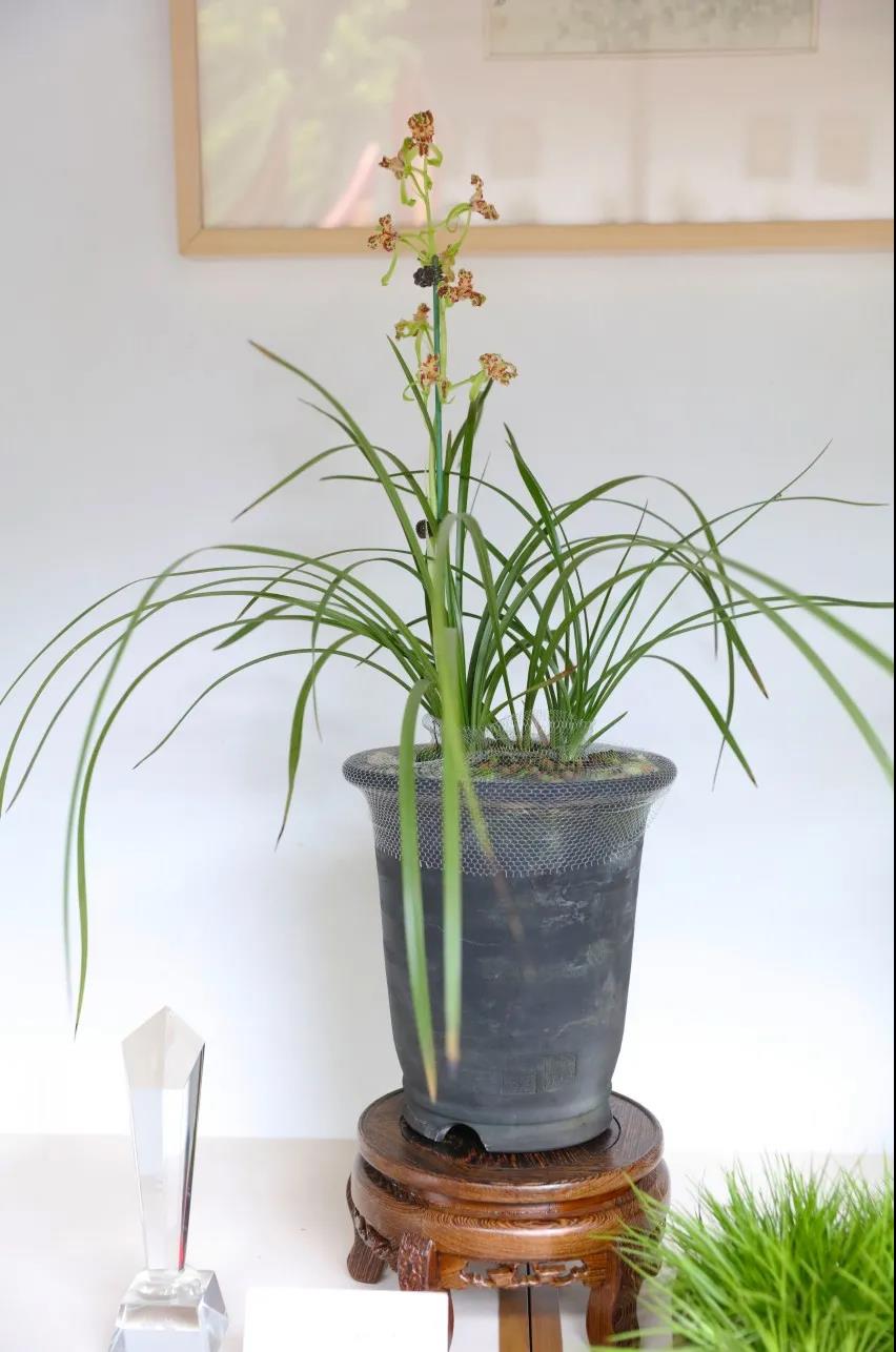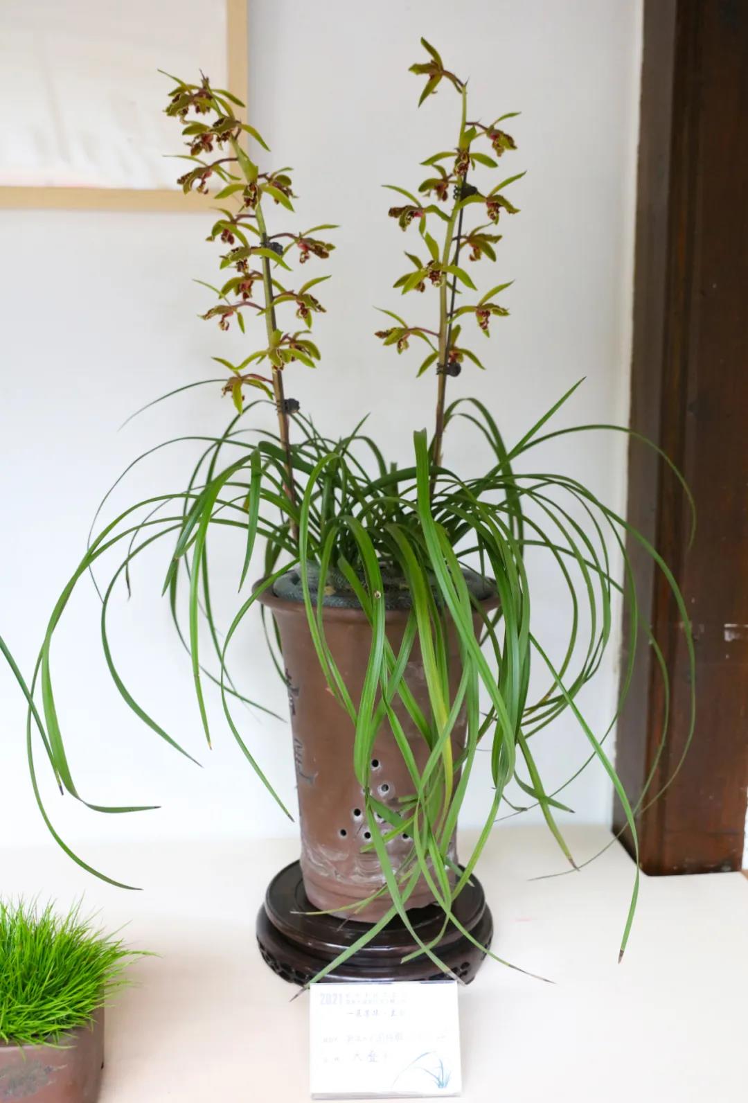 人文園林共有8盆蕙蘭共7個品種參展,分別為“春江梅”、“盧氏蕊蝶”、“翠豐梅” 、“蕩字”、“奇花復輪”、“云中鶴”和“大疊彩”,皆為人文園林董事長陳勝洪多年來采集、收藏的精品。因為對蘭花的熱愛與癡迷,30多年來,他傾力采集、培育了大量蘭花品種,“春江梅”這個品種采自桐廬山中,花桿翠綠出架,花守特好,葉姿半垂,幽香雅韻,如空谷佳人,陪伴他已有20多年。
